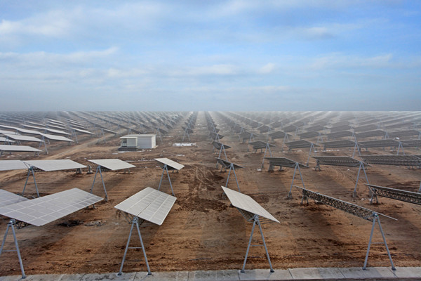 寧夏中衛(wèi)并網(wǎng)光伏電站總規(guī)模:太陽能光伏電池組件裝機(jī)容量共60MWp,一二期電站工程采用恩菲自主研發(fā)的8°角斜單軸智能柔性聯(lián)動追日跟蹤系統(tǒng),于2011年12月并網(wǎng)并投入運(yùn)營;三期電站工程采用固定式支架安裝方式,于2013年1月并網(wǎng)并投入運(yùn)營。  該項(xiàng)目主要特點(diǎn)包括:一、二、三期工程均利用綠色能源——太陽能發(fā)電技術(shù),該技術(shù)綠色無污染;其中一期二期工程采用自主研發(fā)的智能聯(lián)動跟蹤系統(tǒng)的方式,對比國內(nèi)已投產(chǎn)的同規(guī)模光伏電站,該工程技術(shù)先進(jìn)、國產(chǎn)化程度高、投資省;配置了跟蹤系統(tǒng)智能監(jiān)控畫面,全面實(shí)現(xiàn)電站智能化管理并大大提高了電站的綜合效益。