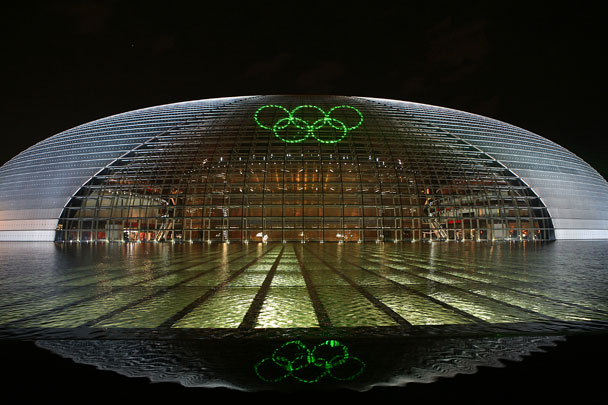 小劇場采用盡端式舞臺,舞臺由兩塊升降平臺組成,可根據(jù)需要整體升降或分別單獨(dú)升降。舞臺背后的兩面墻——隔音墻及落地鋼化玻璃墻看起來雖然普通,卻是“機(jī)關(guān)巧妙”:這兩面墻都可以向左右兩端折疊收縮,待完全打開后面積超過500平方米的室外下沉廣場便猶如后花園呈現(xiàn)眼前,別有洞天。國家大劇院舞臺室外廣場既可以作為演出的背景,也可直接作為舞臺納入演出中,室內(nèi)室外相結(jié)合不僅大大拓寬了舞臺,使演出形式更加靈活多樣,也給藝術(shù)創(chuàng)作者提供了更大的想象和發(fā)揮空間。
